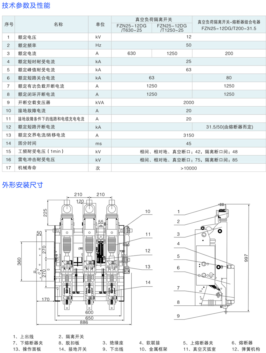 FZ(R)N25-12DG/125-31.5戶內(nèi)高壓真空負荷隔離開關(guān)