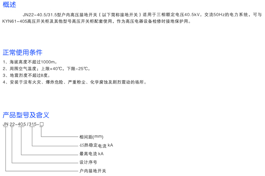 JN22-40.5/31.5戶內(nèi)高壓接地開關(guān)返回列表
