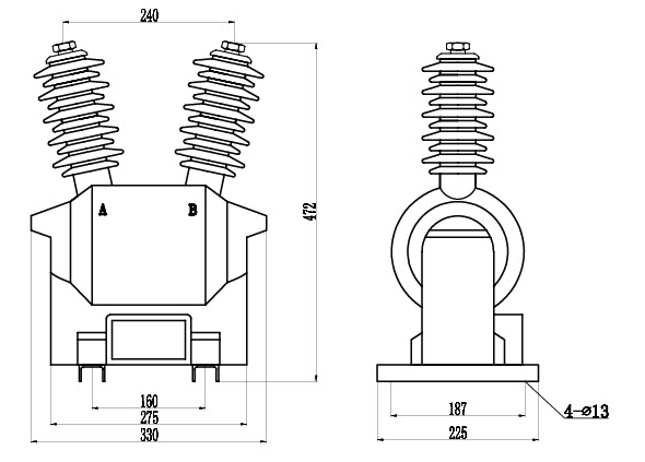 本型電壓互感器為環(huán)氧樹脂真空澆注全封閉單相戶外結(jié)構(gòu), 主要適用于額定頻率為50Hz或60Hz , 額定電壓10kV及以下電力系統(tǒng)中作電能計量、 電壓測量用。