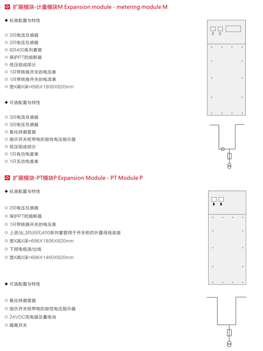 開關(guān)柜為模塊化單元模式,可根據(jù)不同用途進(jìn)行組合;由固定式單元組合與可擴(kuò)展型單元兩大類,滿足各種變電站對(duì)緊湊型開關(guān)柜靈活使用的需要。