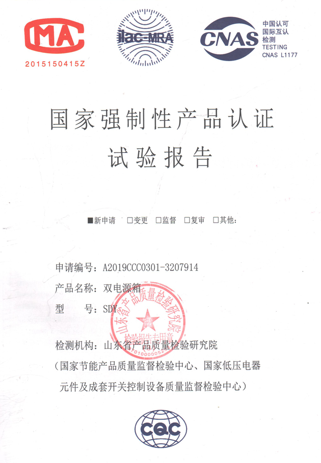 SDY雙電源箱(試驗報告)
