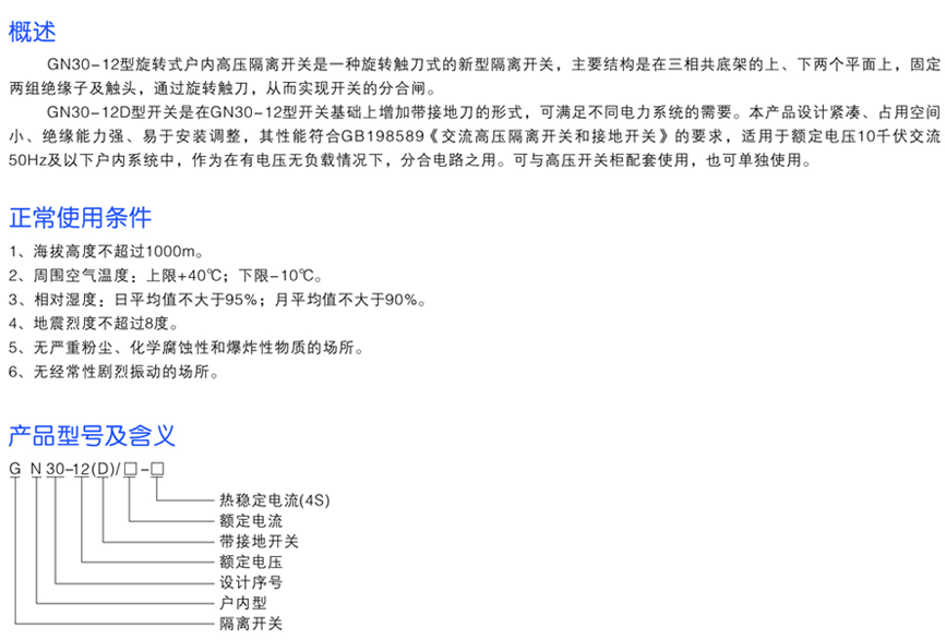 GN30-12系列戶內(nèi)旋轉(zhuǎn)式高壓隔離開關(guān)