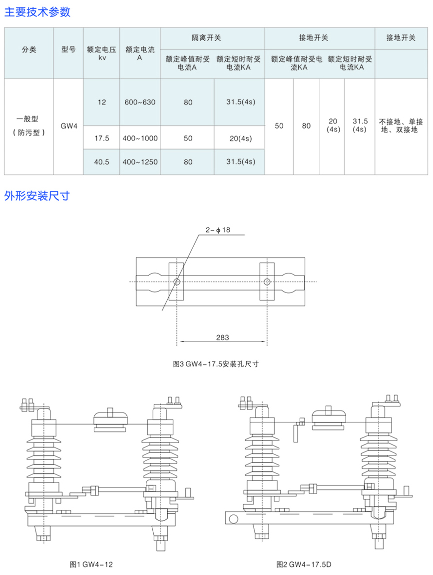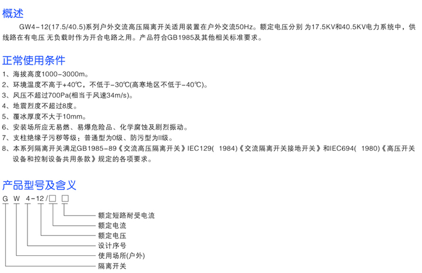 GW4-12(17.5/40.5)系列戶外交流高壓隔離開關(guān)