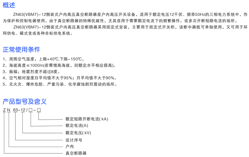 ZN63(VS1)-12系列戶內(nèi)高壓真空斷路器