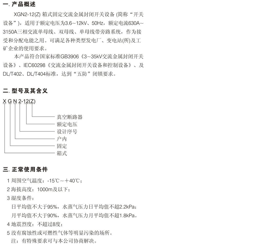 XGN2-12(Z)箱型固定交流金屬封閉開關設備